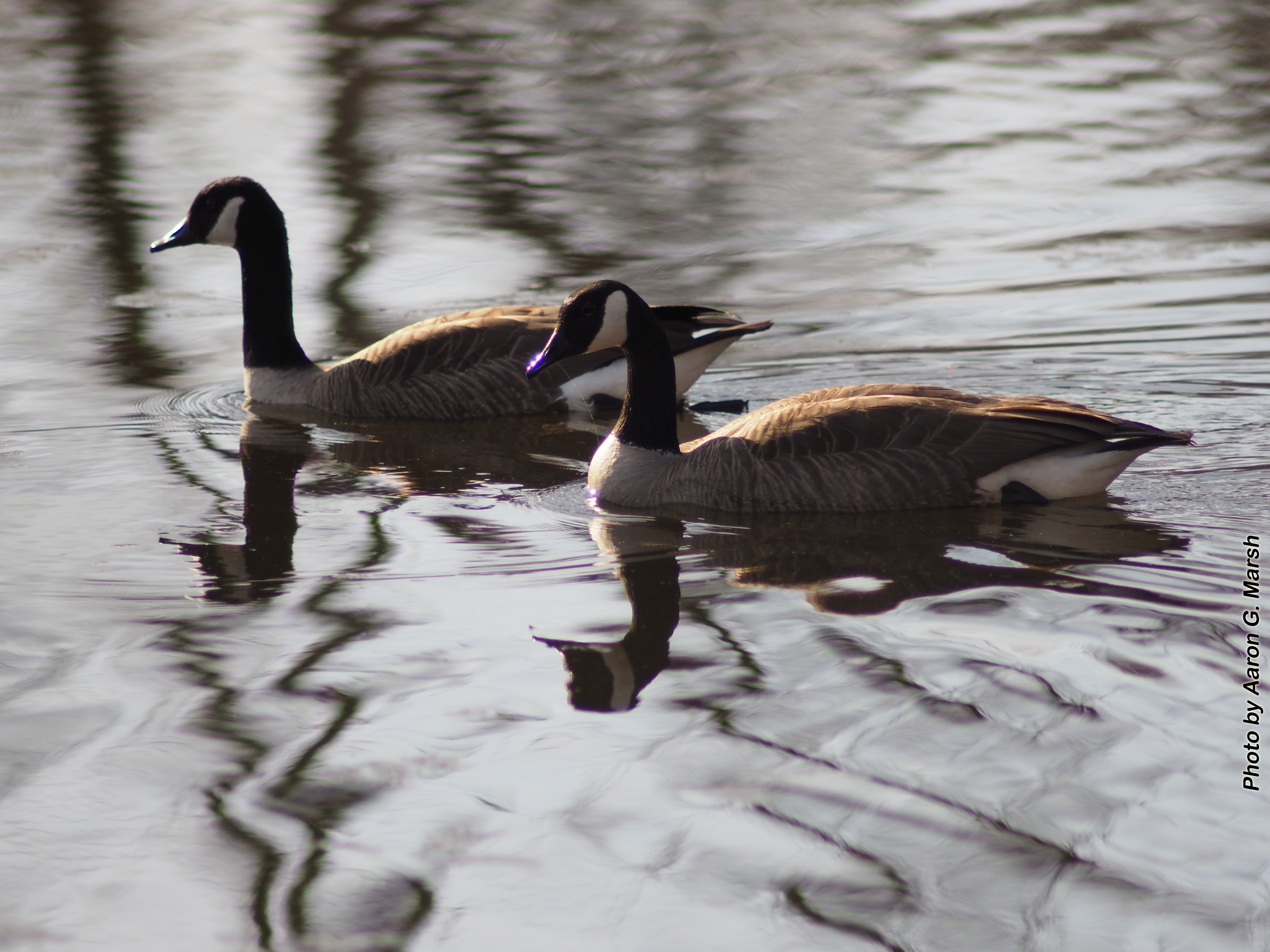 Geese swim on a pond March 14, 2024. Click to enlarge. (Photo by Aaron G. Marsh)