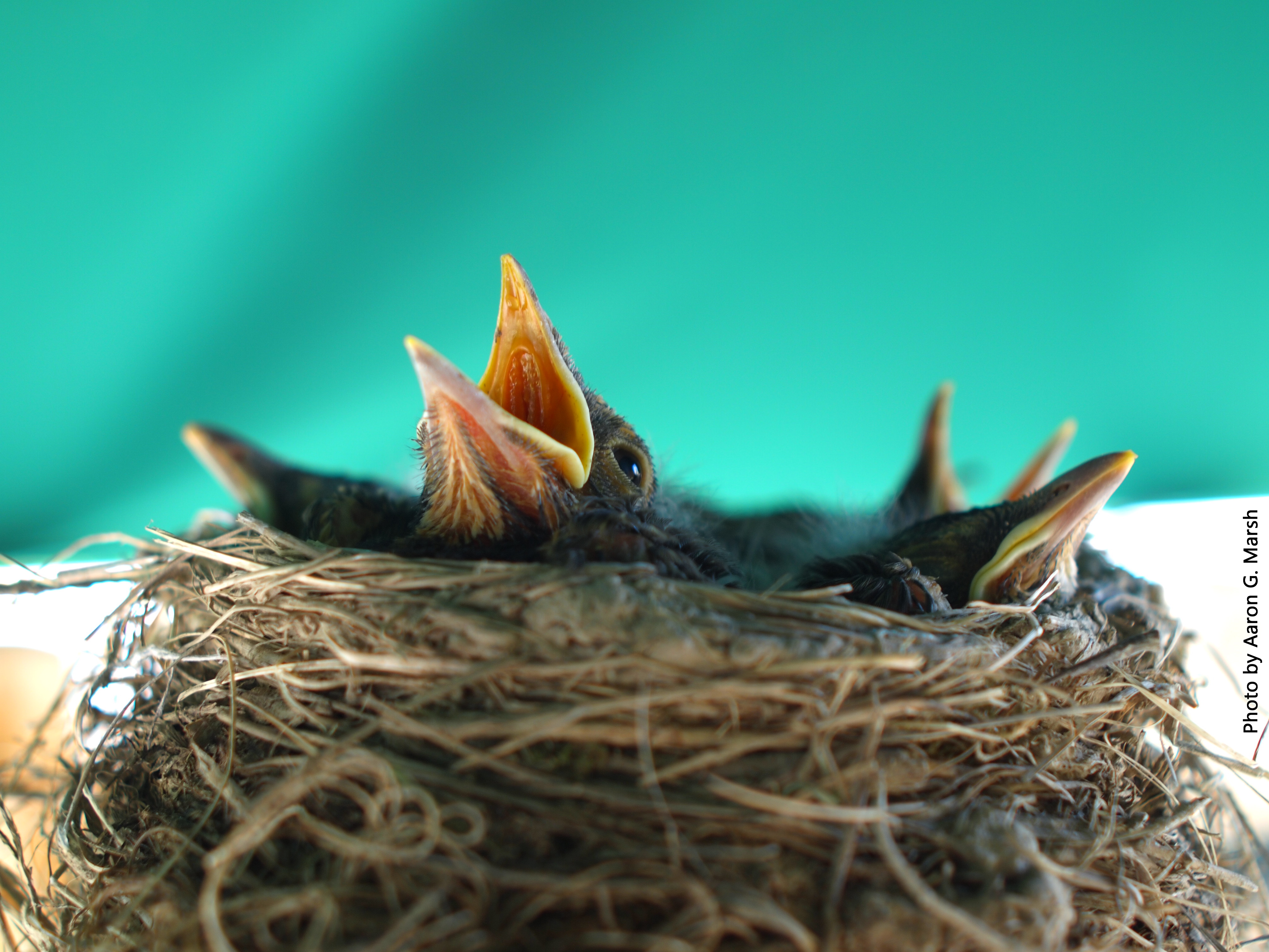 Baby birds chirp to be fed. Click to enlarge. (Photo by Aaron G. Marsh)