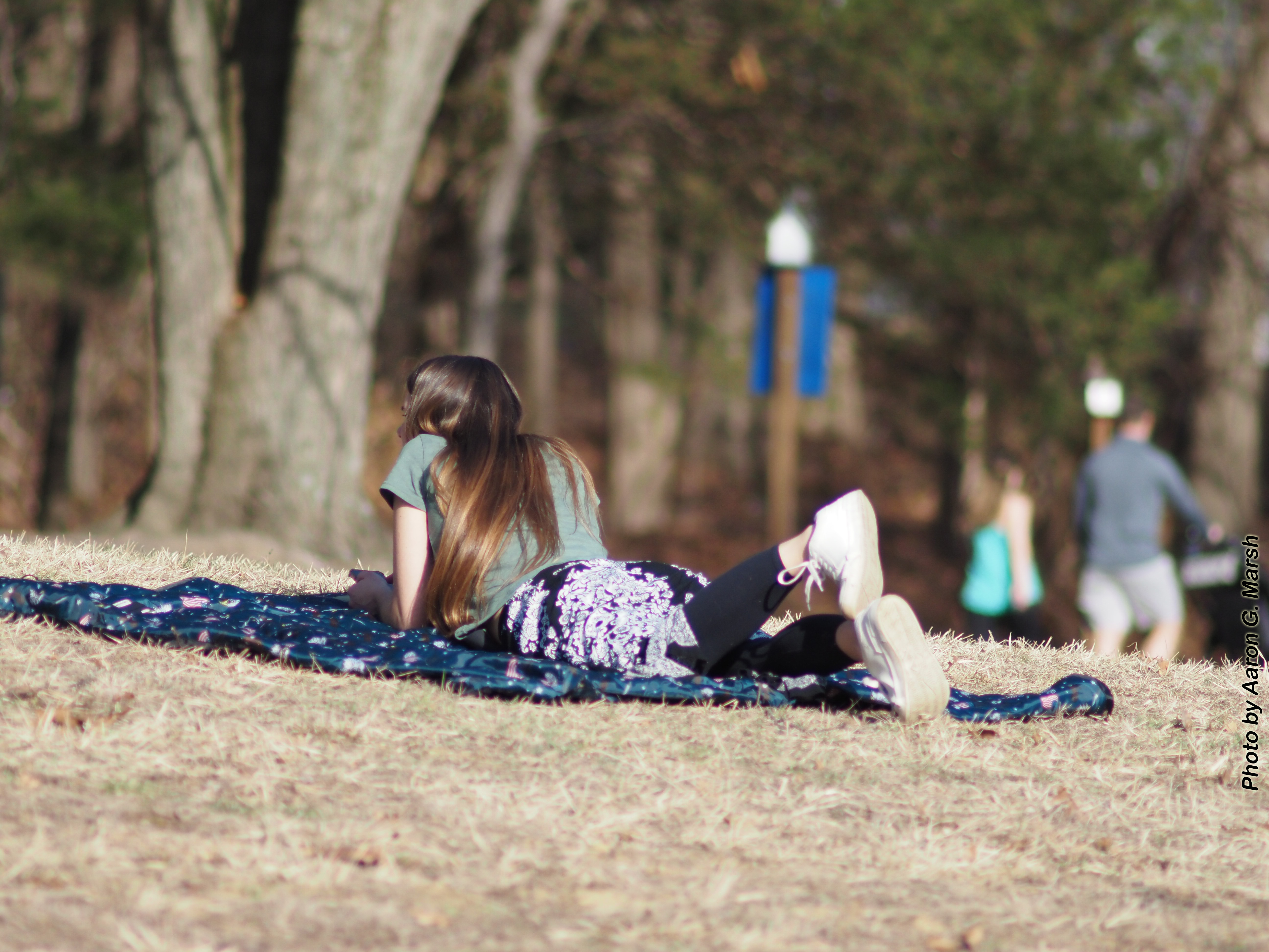 A girl reads on a blanket March 14, 2024. Click to enlarge. (Photo by Aaron G. Marsh)