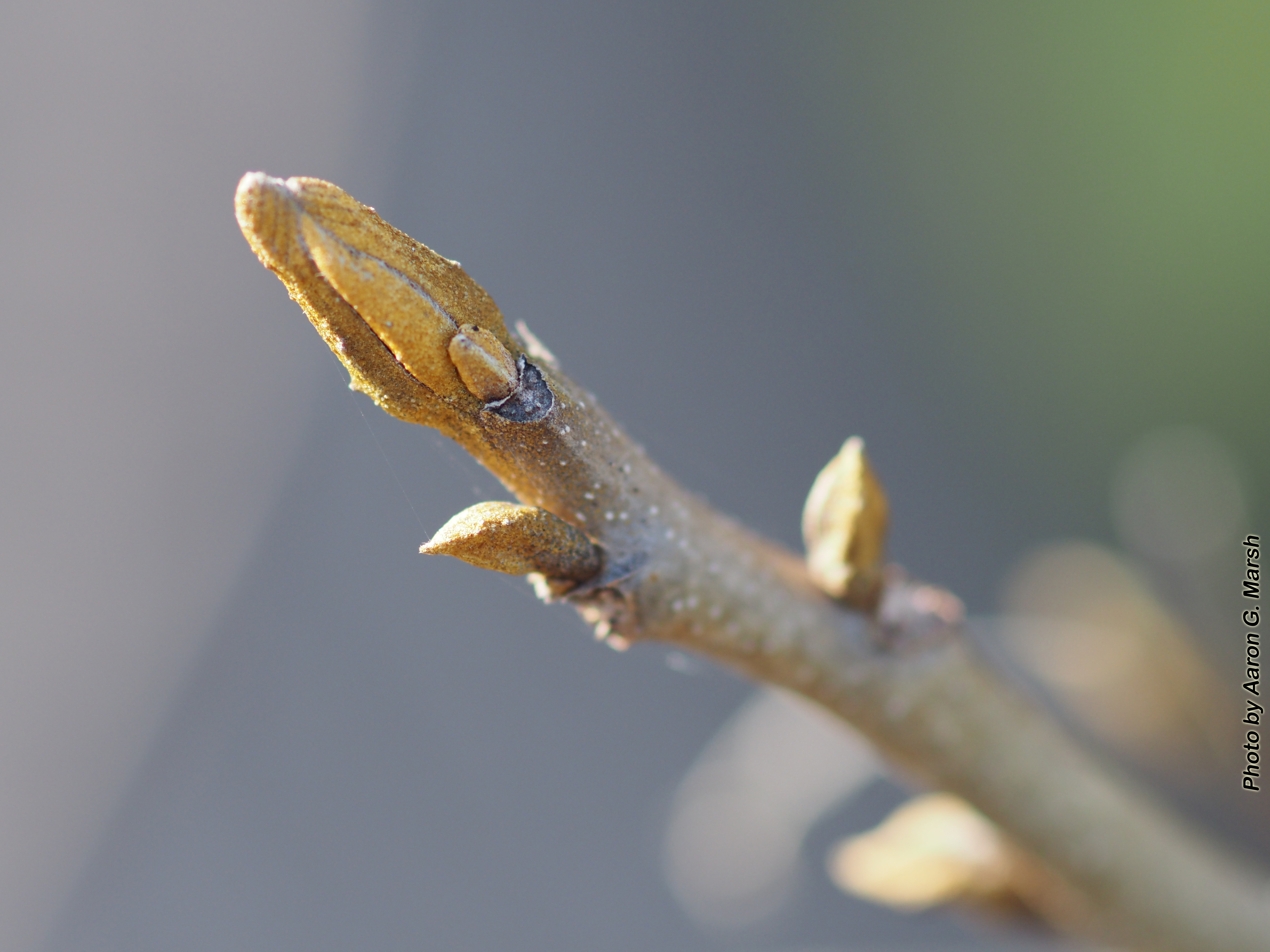 A tree bud grows on March 14, 2024. Click to enlarge. (Photo by Aaron G. Marsh)